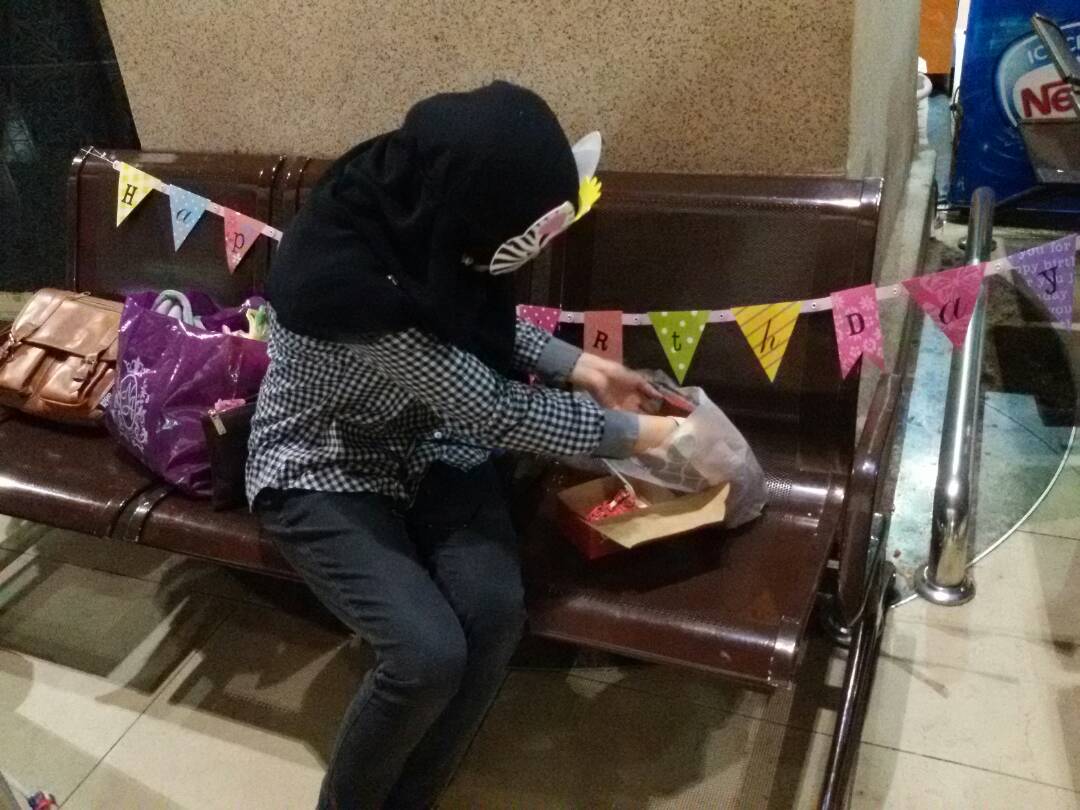 I felt like I needed to clean myself a bit so I brushed my teeth in the toilet, freshen up and stuffs. When I got back from the toilet, Zee was trying to set up some birthday flag banners (and failing) by herself. I was like, should I go to the toilet and come back later? I did so and came back to find two slices of cake. The others were there too except Melly who was charging her phone somewhere else. They asked me to wear a zebra mask. Turned out they were planning to do a surprise for my birthday for so long, but could not get the right moment. It started when we were still in Kuala Terengganu. The night after we ate KFC. Anis and Faz entered our room saying they wanted to see our sad excuse of a room, but really they wanted to celebrate it but did not. So, the next morning they were supposed to sing Happy Birthday together but Jaz did it on her own haha. They planned to do it on the island too, but there was no cake shop. Faz said the first night at the island, when Anis excused herself early, it was because they wanted to find a place at the beach to throw the surprise party at, but the plan obviously failed. That was why Zee gave me her present that same night, exposing that they did have a plan but did not know whether it was going to happen so she gave me the chocolates early. I found it so endearing how determined they were even if their plans failed many times. It was so thoughtful of them for having such intentions. Aww, love you girls <3